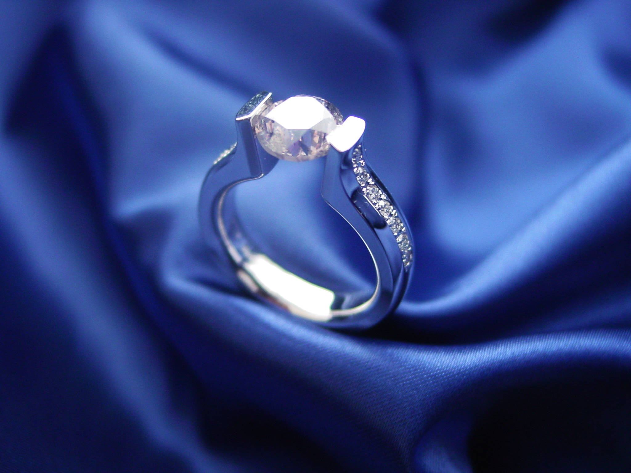 ダイヤモンドがまるで宙に浮いたように見えるこのデザインは、石の美しさを最大限に引き出し、他にはない「輝き」を放ちます。