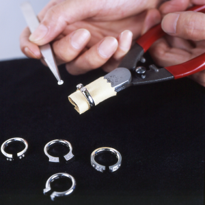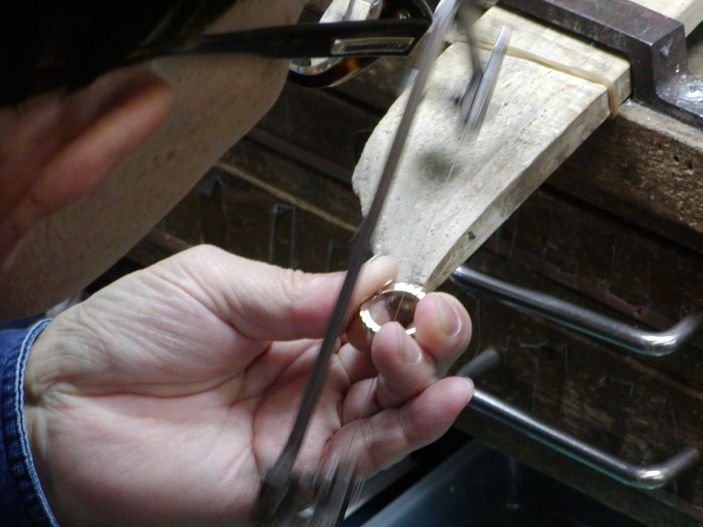 ダイヤモンドを爪で留めずに そのままリングで挟み込みました。